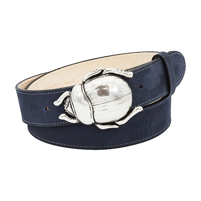 Navy Italian Nubuck Belt with Detachable Silver Scarab Buckle